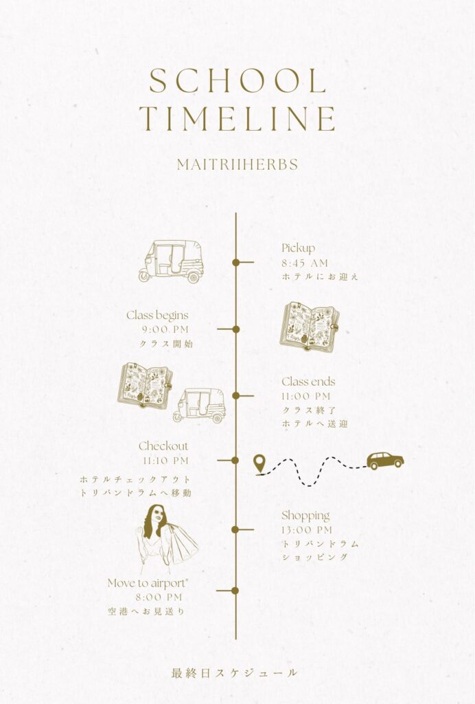 空港送迎、宿泊費、朝食、夕食、産後ケアトリートメント1Day費用、講座代金