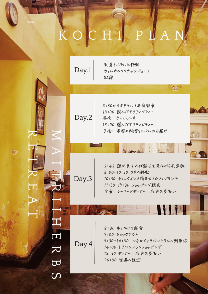 プラン2.南インドクッキングクラスがメインのリトリート