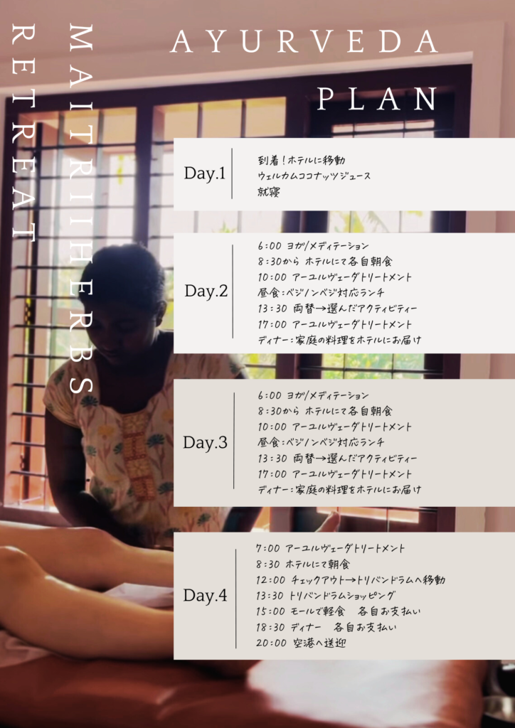 プラン1.アーユルヴェーダトリートメントがメインのリトリート