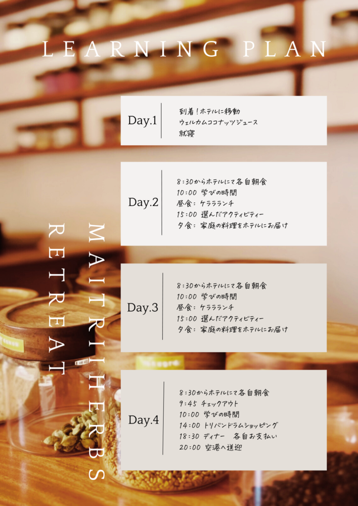 プラン5.アーユルヴェーダハーバリスト学びのリトリート
