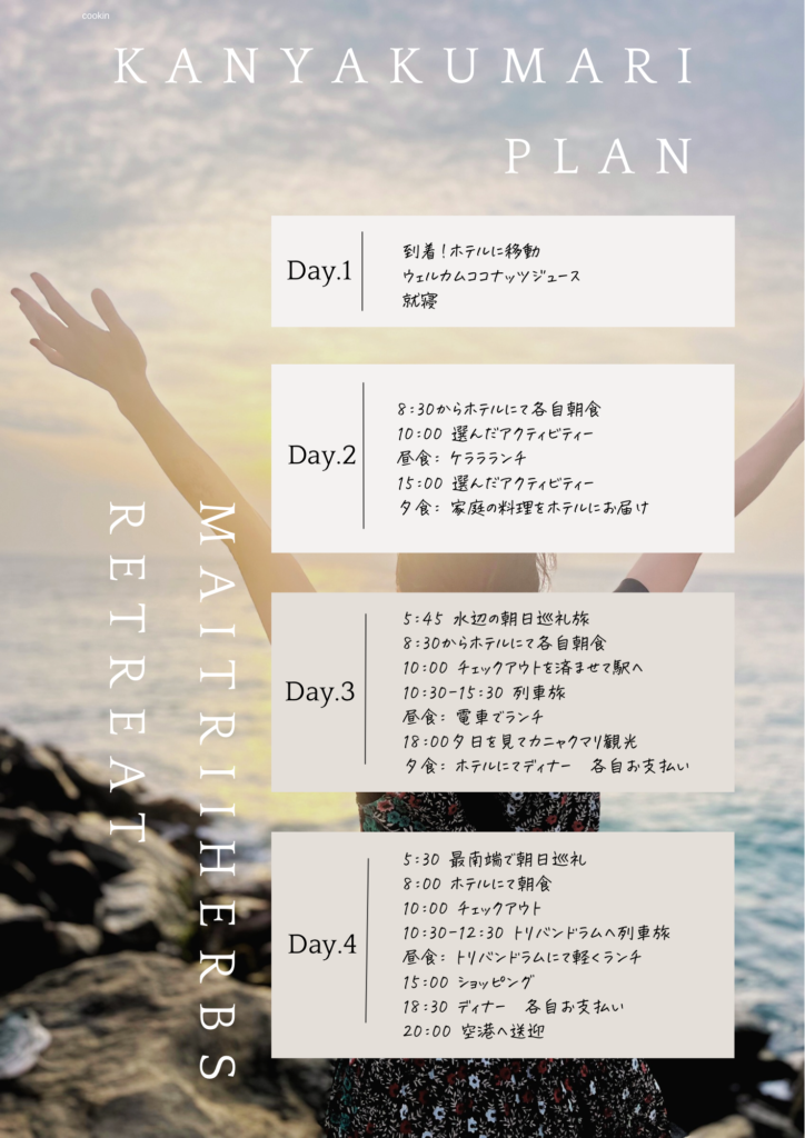 プラン3.南インド最南端カニャクマリも目指すショッピングと観光メインのリトリート